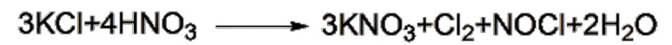 方法一:氯化钾在75℃下与65%硝酸反应生成硝酸钾、氯气和亚硝酰氯。亚硝酰氯被硝酸氧化时,会逸出氯气和二氧化氮,二氧化氮被空气氧化后被水吸收,从而回收硝酸。