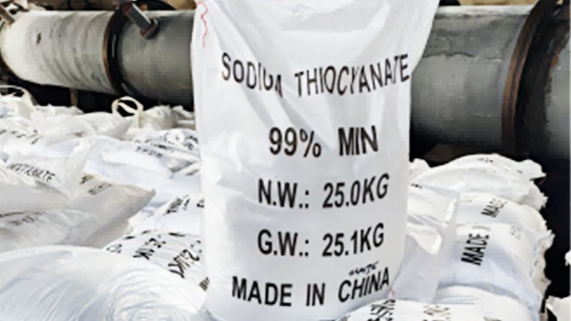 硫氰酸钠是一种无色晶体,含有2份结晶水。在30.4℃时,结晶水逸出,生成无水硫氰酸钠,可溶于水和乙醇。工业上,硫氰酸钠由氰化钠和硫磺浆液的共沸物制得;也是焦化厂焦炉煤气的净化产品之一;此外,它还可由蒽醌二磺酸工艺的废液制得。硫氰酸钠广泛应用于印染、制药等行业,也可用作聚丙烯腈的试剂和溶剂。
